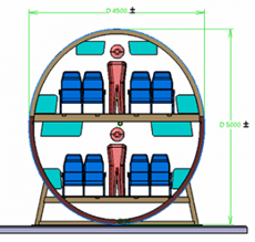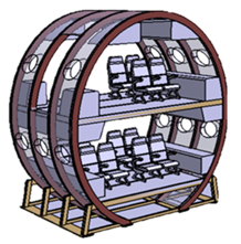 Om het instapproces met uitsluitend handbagage te visualiseren, zijn 3D-computermodellen en schaalmodellen in ontwikkeling. In samenwerking met diverse partners wordt een cabinemodel op ware grootte gebouwd, waarmee het ontwerp geanalyseerd kan worden op duurzaamheid, comfort en maatvoering. Eén van de belangrijkste uitdagingen is het creëren van een optimaal cabineontwerp dat een balans biedt tussen duurzaamheid, passagierscomfort en functionaliteit. De 2+2 stoelconfiguratie op beide verdiepingen maakt het mogelijk om meer dan 245 passagiers comfortabel te vervoeren. Bagagebakken zijn zo ontworpen dat er voldoende ruimte is voor twee handbagagekoffers per passagier, en trappen verbinden beide passagiersdekken. Zeven toegangsdeuren zorgen voor een snelle entree en veilige evacuatie, terwijl keukens en toiletten aan de voor- en achterkant zijn geplaatst.